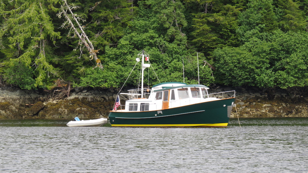 Headed today finally out of Ketchikan harbor. Still cloudy grey, but with some optimistic blue patches. But first: gas.