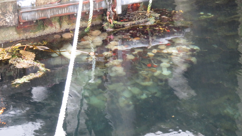 Fabulous marine life...so clear and how convenient to just look over the dock to see it. I feel like i should tell you...don’t rush back, it’s light here by 5:30 a.m. as well, although we do have blinds to shield you from reality. And, with respect to your 2 shapes looming in the mist, you have a booming sort of voice, roll up newspaper into a cone and make like a fog horn...you know, with your third hand after steering and ‘windshield-wiping ’. 😳