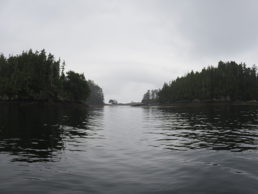 Will the engine start, in this wilderness? I've gotten over that one. Lately, it always does, who knows why, is it new gas? I boat out into the dismal grey, calm in the anchorage but immediately wavey outside. OK i can handle this, so far. But it's raining, and very soon, i can't see anything. Continuing, an island looms, and i know which one it is because that's the direction i was in, and i've pre-designated a cove on this island as 1 i can bail to if there's trouble. So i follow the coast close along, and there's the cove and thank goodness it isnt wavey, it's 'protected'. I anchor temp and wait for the fog to lift.