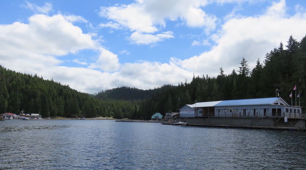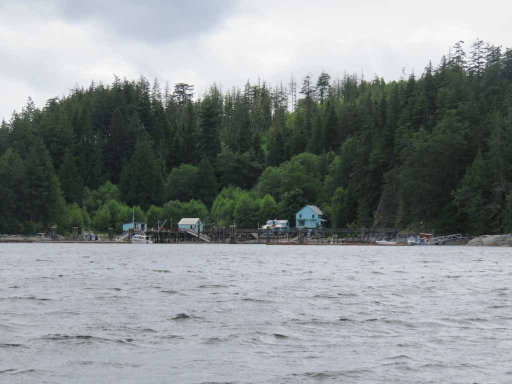 The group takes a side-channel, i continue on, check an anchorage but contrary to the Guidebook it's now occupied by some commercial fishing/whatever warehouse/repair-shed + dock/etc. Try another: same. Somehow this seems wrong, but, what, should the coves be reserved for itinerant cruisers? No.