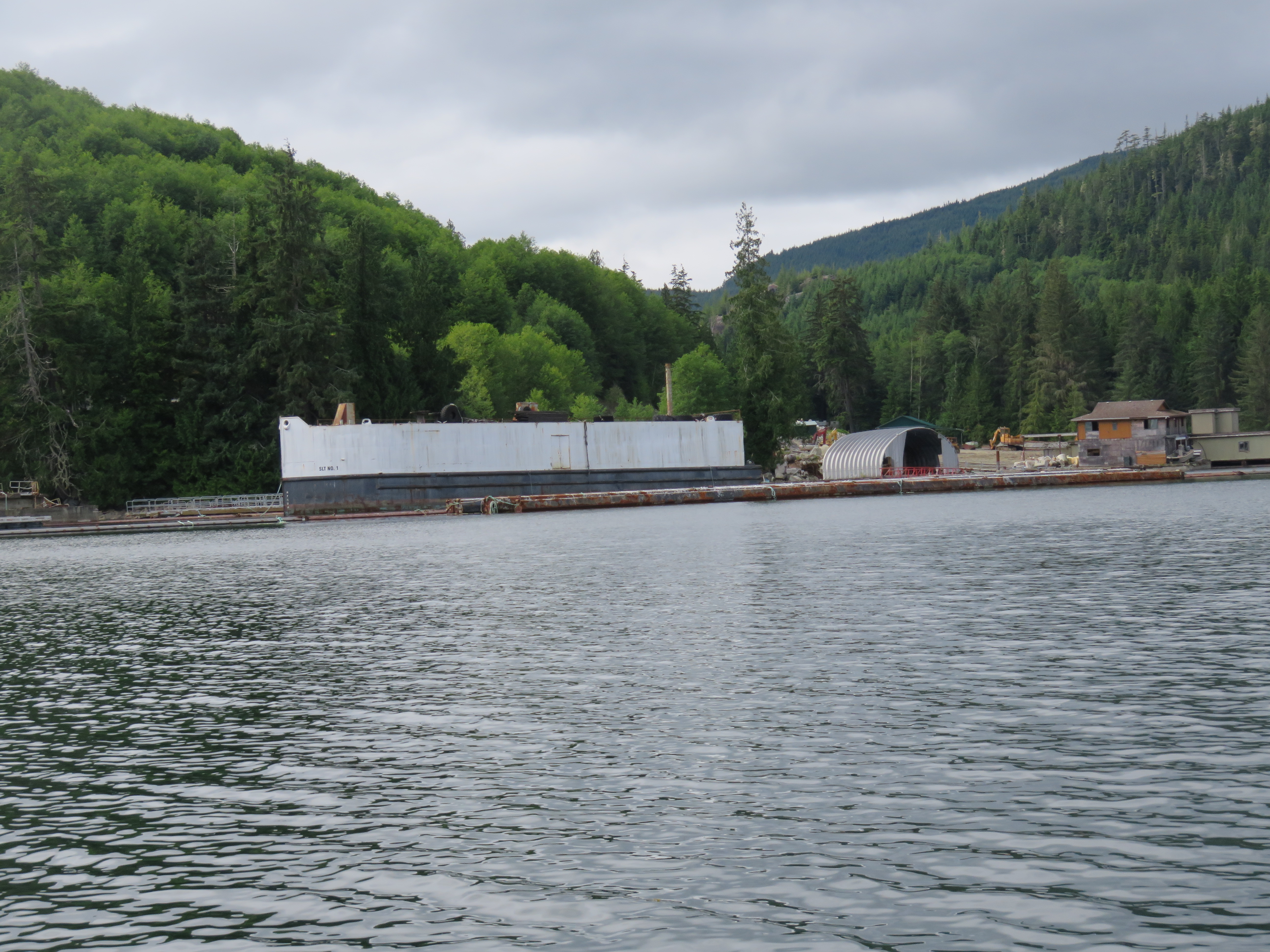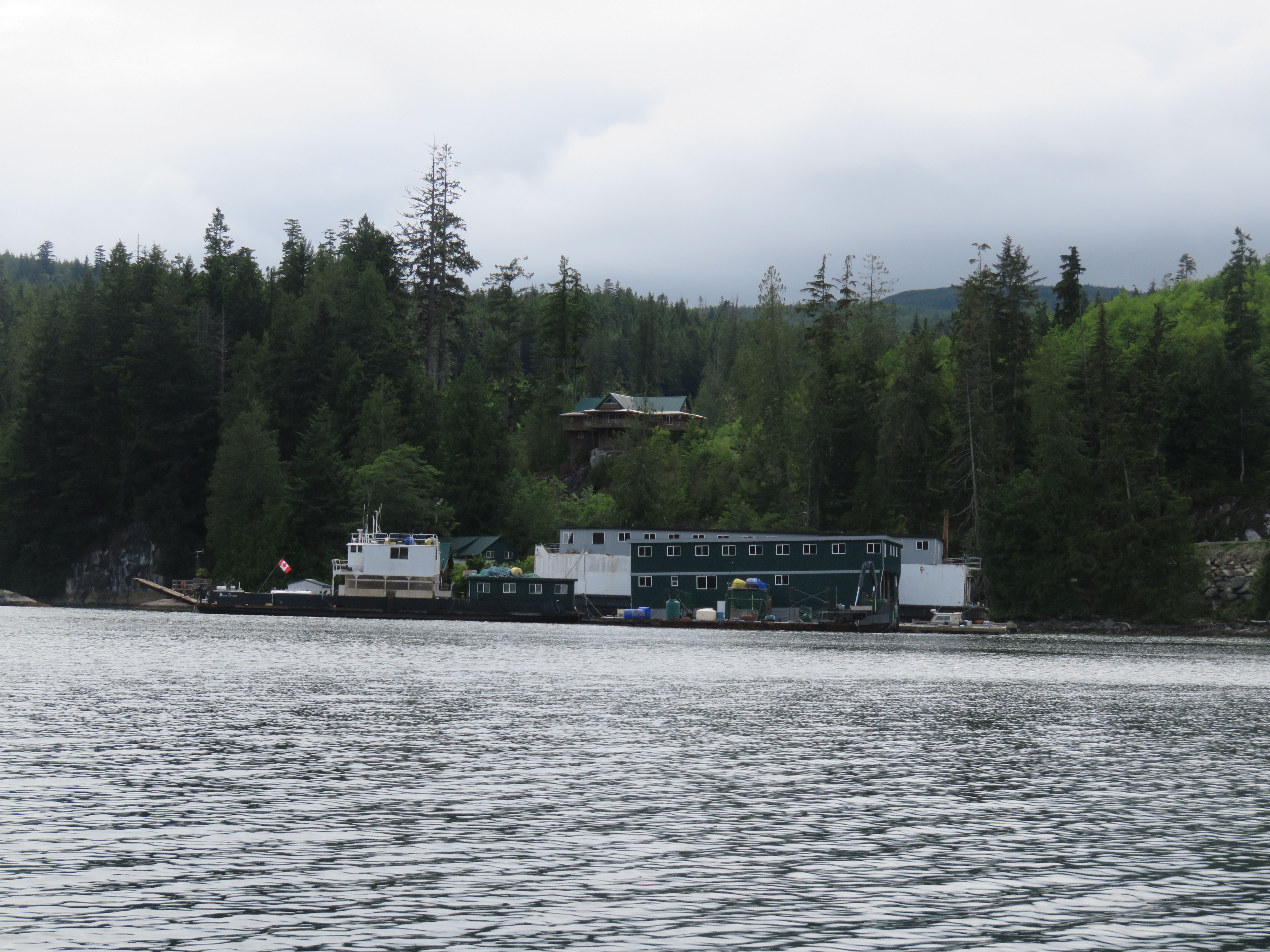 Finally i try another long inlet, again all industrialized, fishing, logging, multi-story float-housing. I could park next to 1 big cruiser there in the Guidebook-designated anchorage space. But what if i dragged (yes, as usual)? It would be embarrassing. So i find an undesignated corner, next to an added rusty oyster rack, i think. Stern anchors, 2, poor rock bottom i think, judging by shoreline, yet it holds for, after an eve of ~severe wind, a quiet nite.
