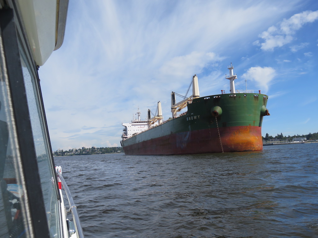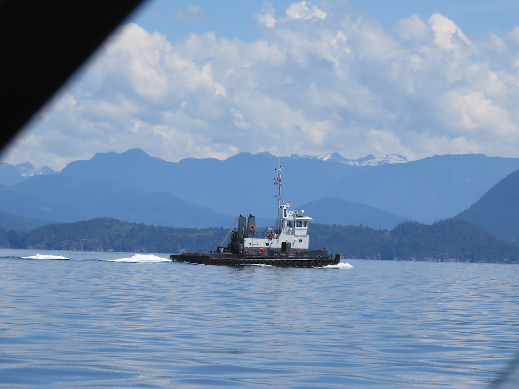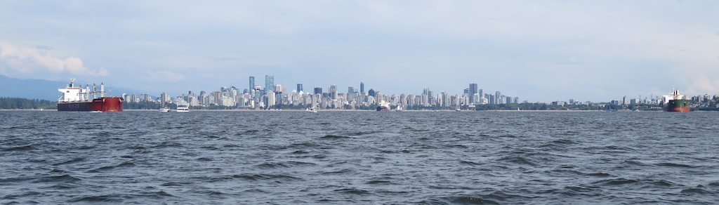 Tried to get hold o my friends in Lund, but failed. O too bad. Off to Vancouver. It was a perfect sunny day. Wind waves initially increasing to ~1', not bad, then rounded a point & the sea went flat all the way to Vancouver.